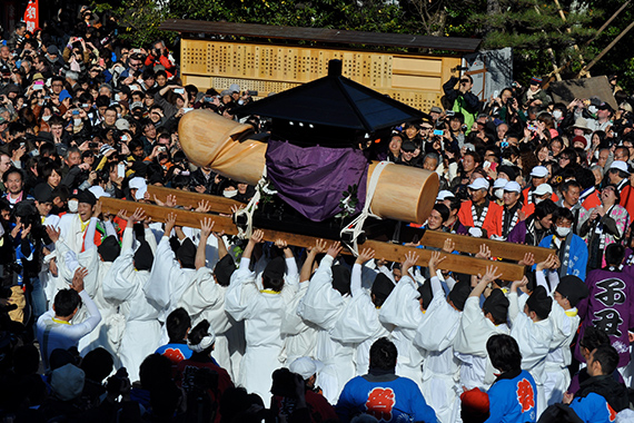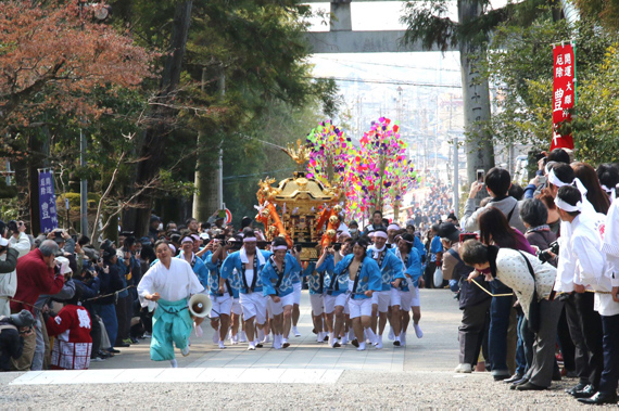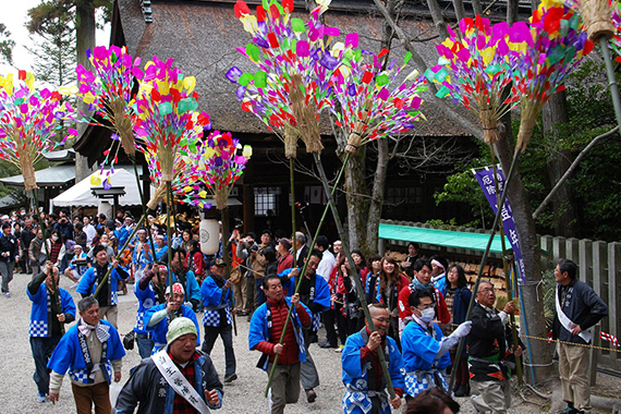 五穀豊穣と国家安泰を祈願する祭で、尾張に春を呼ぶお祭として有名です。毎年3月15日以前の日曜日に斎行され、素朴な精神を受け継いだ氏子等が豊年を祈る祭であり、当日は数十万の善男善女で賑わいを呈します。