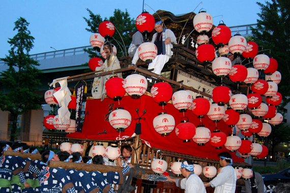 祭りの歴史は古く、江戸時代(1653年―「中町祭礼帳」)から続いており、本祭には五ケ町より奉納された山車の上で山車文楽・からくり人形芝居が上演されます。間祭では小型の花車が奉納されます。