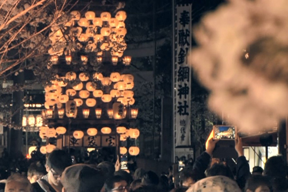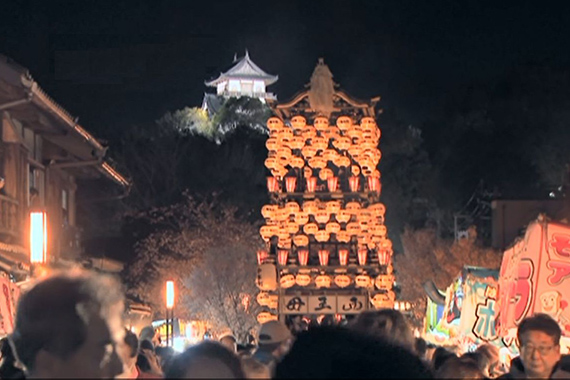 犬山祭の車山の中でも特に、満開の桜の中提灯の明かりに映える夜車山の曳行は、夜空に浮かぶ白帝城(犬山城の別名)と共に、絢爛豪華にして当代髄一の景観であるとも言われる程です。