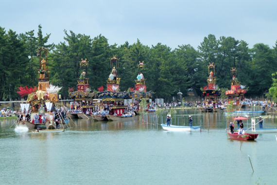 津島神社の祭礼として600年近くの歴史があり、日本三大川祭りのひとつとして、全国の数ある夏祭りの中でも最も華麗なものと言われています。尾張津島天王祭の車楽舟行事は昭和55年に国の無形民俗文化財に指定されており、ユネスコの無形文化遺産に登録されました。
