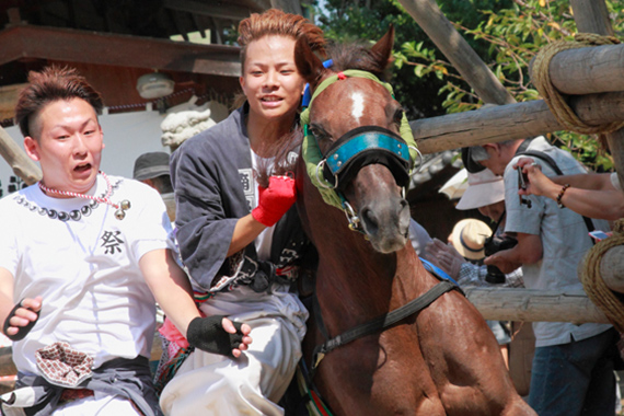 『馬の塔』とは、馬の背に札や御幣を立てたり又は、自慢の品を乗せて豪華な馬具で飾って神社や寺に奉納するお祭りです。