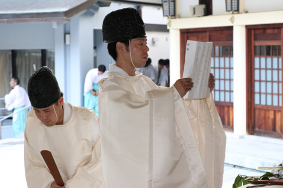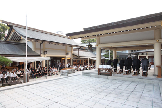 神賑行事として、愛知県神道青年会の若手神職による「朝日舞」、愛知県宗教青年会議の僧侶による「神前読経」等の奉納があり、暑い夏の夜のひとときに御英霊への想いを回顧する祭典です。