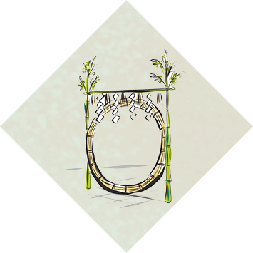 大祓は、我々日本人の伝統的な考え方に基づくもので、常に清らかな気持ちで日々の生活にいそしむよう、自らの心身の穢れ、そのほか、災厄の原因となる諸々の罪・過ちを祓い清めることを目的としています。 大祓は年に二度おこなわれ、六月の大祓を夏越の祓と呼びます。大祓詞を唱え、人形ひとがた(人の形に切った白紙)などを用いて、身についた半年間の穢れを祓い、無病息災を祈るため、茅や藁を束ねた茅の輪ちのわを神前に立てて、これを三回くぐりながら「水無月の夏越の祓する人は千歳の命のぶというなり」と唱えます。また、十二月の大祓は年越の祓とも呼ばれ、新たな年を迎えるために心身を清める祓いです。