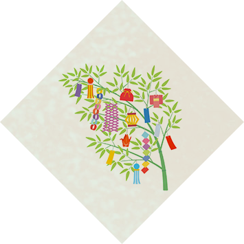 七夕は「しちせき」と読み、古くは、御霊みたまの衣服を織り、棚に供え、けがれを祓う行事でした。 そこに中国から星祭と手芸や裁縫の上達を願う祭の風習が入ってきて、現在の笹竹に願い事を書いた短冊を結びつけて祈る行事へと変化していきました。