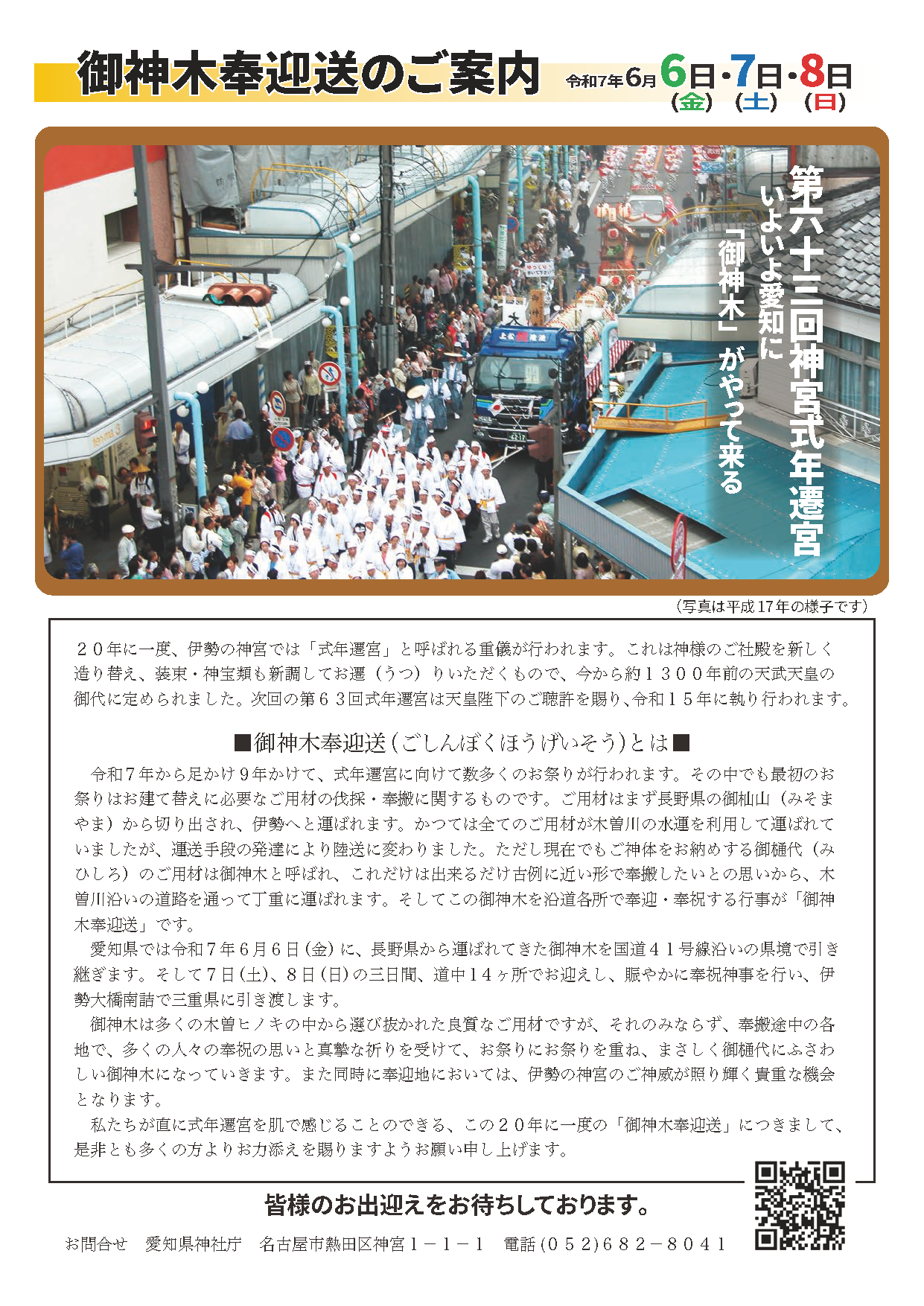 20年に1度のこの機会に多くの人にお出迎えいただき、奉祝の誠を捧げられますようご案内申し上げます。